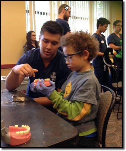 Here, one of our senior dental scholars teaches the day’s youngest scholar about dental physiology: